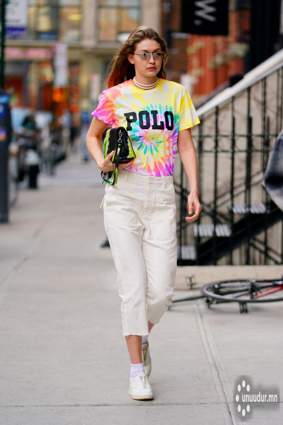 Хонгорхон төрхөөрөө Америкийн загварын ертөнцөд маш хурдан нэрд гарсан Жижи Хадид. Мөн түүнийг Калифорнийн ялдам охин гэх тодотгол ч дагадаг. Гэхдээ юу юунаас илүү түүний хувцаслалт үргэлж тэсрэлт хийсээр ирсэн юм. Тэр хэрхэн хувцаслахаа мэднэ. Цээж задгай, бие дагасан даашинзнаас авахуулаад нүсэр, нугалаа хуниас бүхий даашинз ч бий. Эсвэл богино цагаан футболка, жийнсэн өмдтэй байлаа ч тачаангуй харагддаг. Ингээд түүний энэ зуны, энэ жилийн загвараас тоймлон хүргэе.