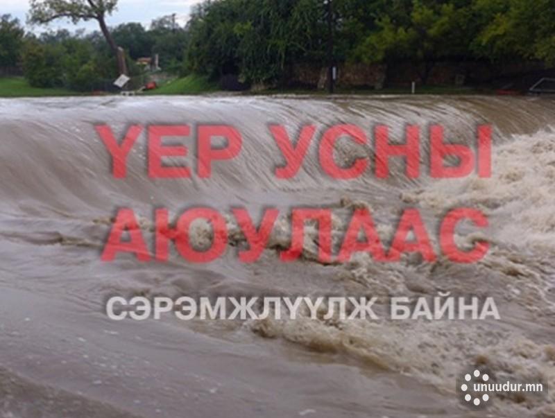 Наймдугаар сарын 7-нд Туул гол Улаанбаатар хот орчимд усны түвшин 25 см нэмэгдэж, үерийн түвшинг даван үерлэнэ. Иймд дээр дурьдсан гол болон гол мөрний саваар нутаглаж буй ард иргэд, аж ахуйн нэгж, аялж, амарч, зугаалж буй хүмүүсийг үерийн аюулаас сонор сэрэмжтэй байхыг анхааруулж байна.