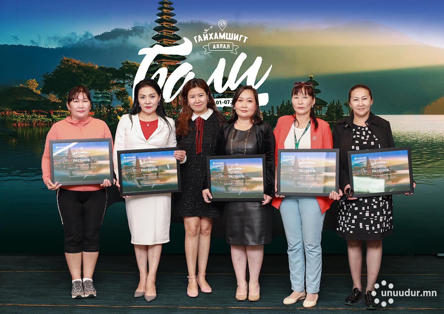 Бүгд Найрамдах Индонез Улсын Бали арлаар аялах азтай харилцагчдаар Б.Батбаяр, Т.Өлзийжаргал, С.Лхагважав, Н.И.Глушкова, Ү.Өнөрцэцэг нар тодорч, батламжаа авлаа. Байгалийн үзэсгэлэнт газрууд, түүх соёл хосолсон Бали арлаар аялж, “Гайхамшигт аялал”-ыг бүтээх харилцагчдадаа баяр хүргэе.
