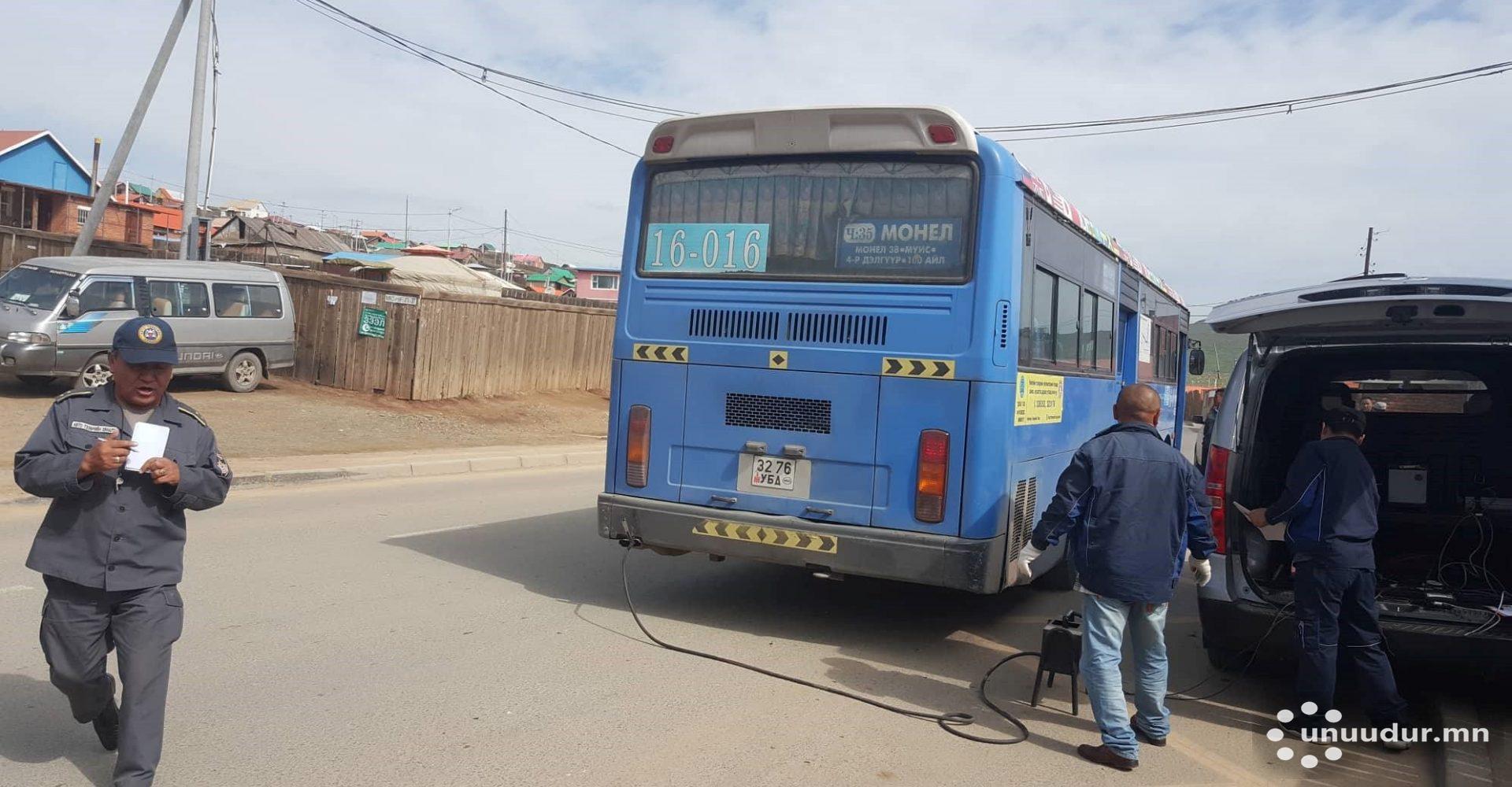Нийтийн тээврийн хэрэгслээс ялгарах утааны тортогжилтын хэмжээг Нийтийн тээврийн үйлчилгээний газраас явуулын оношилгооны багажаар хэмжих шалгалтыг энэ сарын 12-ны хийж эхлээд байна. Эхний хоёр өдрийн байдлаар нийтийн тээврийн 13 компанийн их багтаамжийн 69 автобус шалгалтад хамрагдсан бөгөөд утааны тортогжилтын хэмжээ стандартын үзүүлэлтээс их байсан зөрчлүүдэд Автотээврийн хяналтын улсын байцаагч холбогдох хууль, тогтоомжийн дагуу хариуцлага тооцон, тухайн ААН-үүдэд улсын байцаагчийн хугацаатай албан шаардлага хүргүүлэхээр ажиллаж байгаа аж.