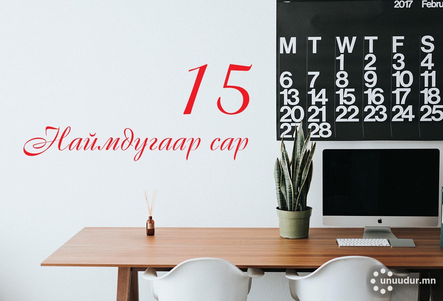 Өнөөдөр 8 дугаар сарын 15-ний өдөр