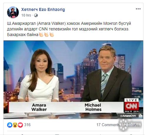 "CNN-ийн мэдээний хөтлөгчөөр монгол бүсгүй ажиллаж байна. Бахархаж байна" гэх мэдээ нилээдгүй тарах болсон. Түүнд Ш.Амаржаргал гэх нэрийг "хайрлаад" буй. Тэгвэл Амара үнэхээр Монгол уу?