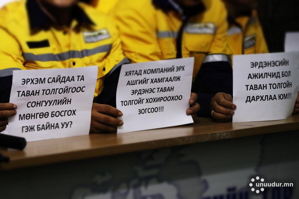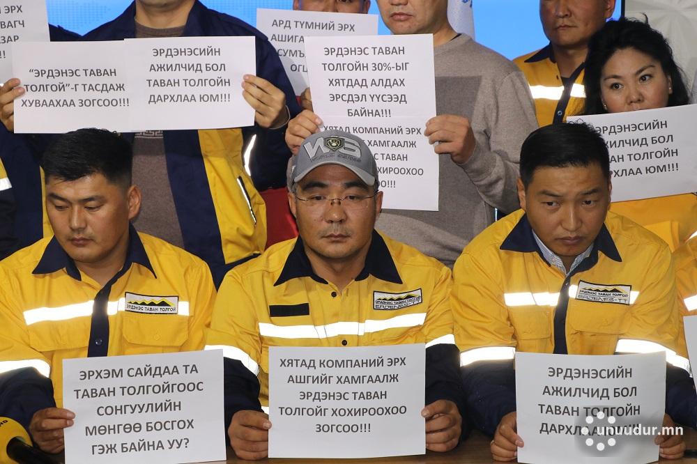 Угтаа хуулиндаа бол компанийн бүтэц зохион байгуулалт өөрчлөгдөх тохиолдолд 45 хоногийн дотор ажилчдад танилцуулсан байх ёстой. Монгол Улсын бодлогыг хэрэгжүүлэх ёстой сайд хүн компанийн дотоод ажлыг шууд удирддаг боллоо. Тэр хүн Тавантолгойгоос ирэх жилийн сонгуулийн мөнгөө босгох гэж байна гэж бид үзэж байна. Иймд УУХҮ-ийн сайдыг огцруулах шаардлагыг Монгол Улсын Ерөнхий сайд У.Хүрэлсүхэд тавьж байна.