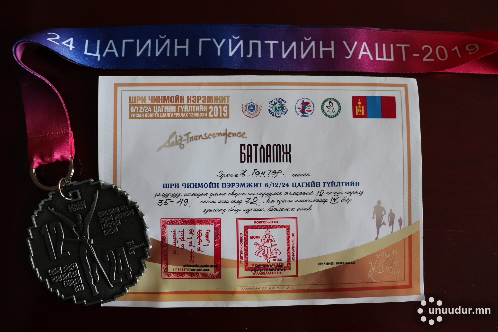 Нийслэлийн спортын хороо, Монголын хэт холын марафон гүйлтийн холбоо, Үндэсний цэцэрлэгт хүрээлэн, Шри Чинмойн марафоны багууд хамтран зохион байгуулсан “ШРИ ЧИНМОЙН”-ы нэрэмжит 6/12/24 цагийн хэт холын гүйлтийн улсын аварга шалгаруулах тэмцээний “12” цагийн төрөлд Дотоодын цэргийн 805 дугаар ангийн Харуул, хамгаалалтын салбарын захирагч, дэд хурандаа Ж.Гантөр 72 км гүйсэн амжилтаар IV байр эзэлж батламж, хүрэл медалиар шагнагджээ.