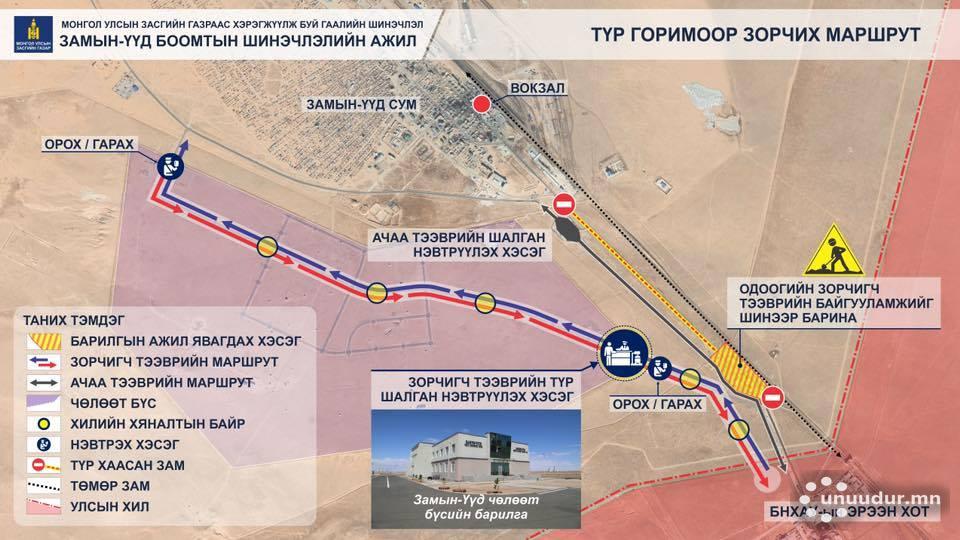 Түр горимоор зорчих маршрут болон түр байгууламжуудын байршлын зургийг танилцуулж байна.