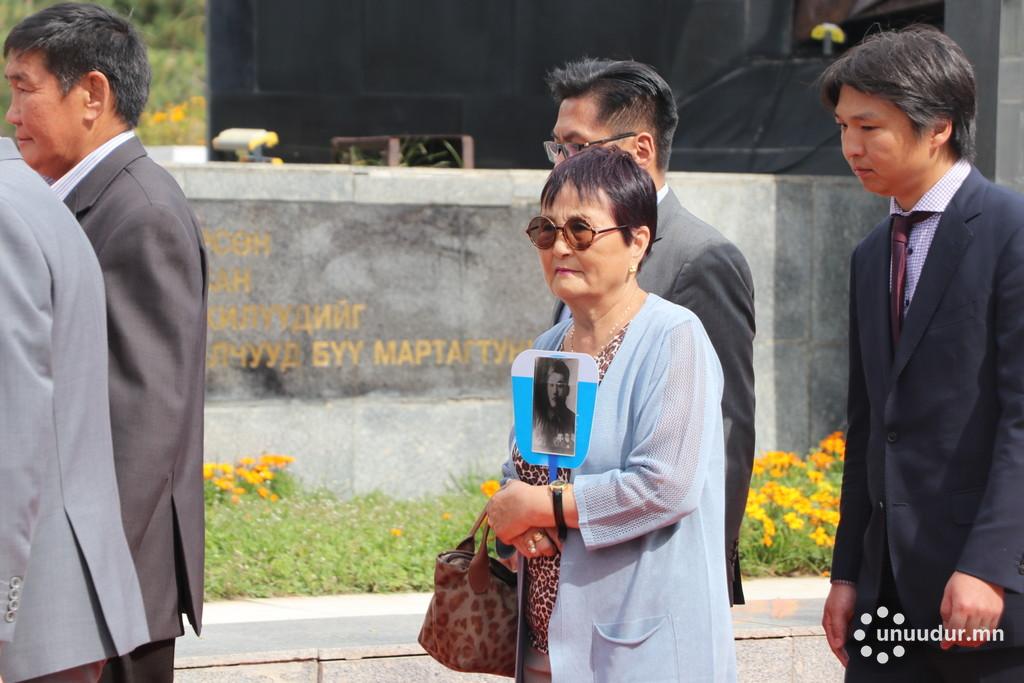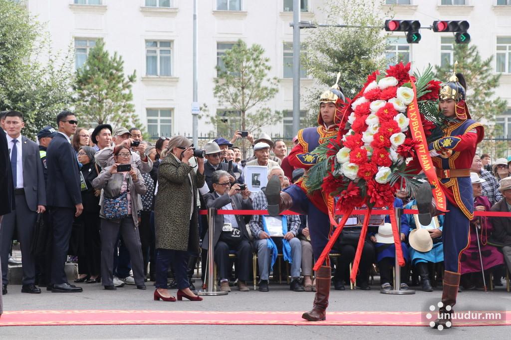 Мөн хэлмэгдэгсдийг дурсан санаж, хүндэтгэл үзүүлэхээр ирсэн зарим УИХ-ын гишүүн, улс төрийн намын төлөөллүүд, төрийн болон төрийн бус байгууллагын төлөөлөл, иргэдийн төлөөлөл Хэлмэгдэгсдийн хөшөөнд цэцэг өргөж, хүндэтгэл үзүүлэв.
