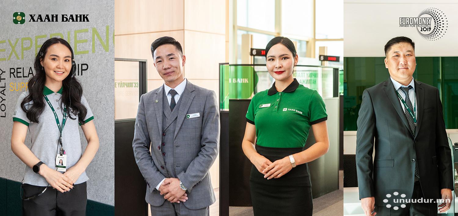 ХААН Банк ам бүл 6000-уул. Эх орны өнцөг булан бүрт байх 538 салбар нэгжээрээ дамжуулан Монголын нийт айл өрхийн 70 гаруй хувьд хүрч үйлчилдэг өнөр өтгөн ам бүлийн гишүүд хэрхэн ажилладаг бол? Энэ удаа бид харилцагчтай илүү тулж ажилладаг буюу тэргүүн шугаманд үүрэг гүйцэтгэдэг эрхмүүдийг онцоллоо. Тэд ямар стандарт мөрддөг, ажлынхаа юугаар илүү бахархдаг, юунд зорьдог талаар хамтдаа сонирхъё.