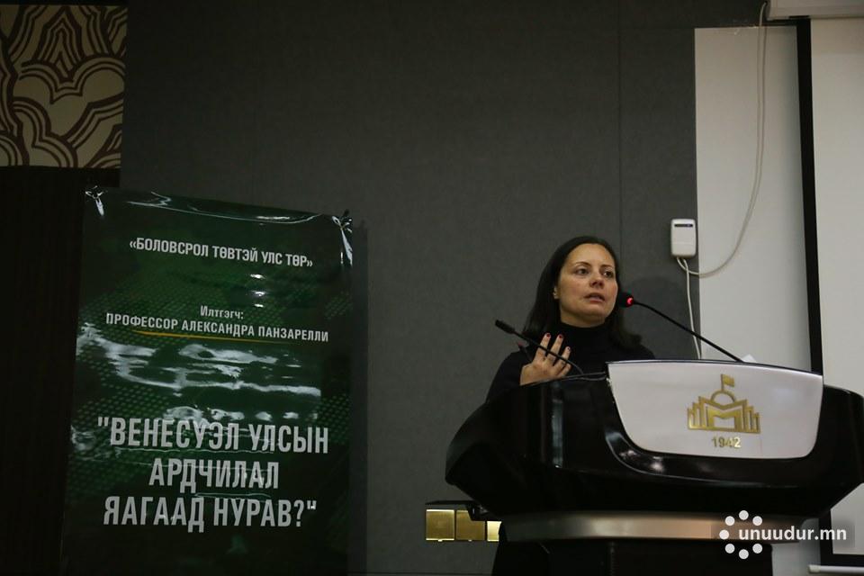 Нэг хүний дарангуйлал Венесуэл улсын эдийн засгийг сүйрүүлэх гол хүчин зүйл болсон гэдгийг тус улсын иргэн, судлаач Александра Панзарелли МУИС-ын Номын санд тавьсан илтгэлийнхээ үеэр онцоллоо.