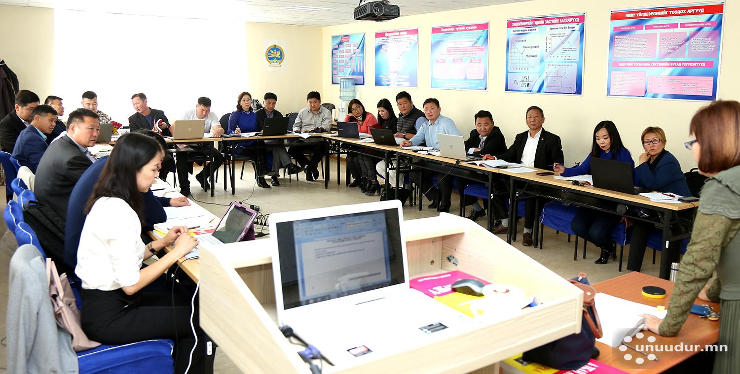 Сургалтанд орон тооны ҮЭ-ийн хорооны дарга нар хамрагдаж буй бөгөөд сургалтаар олж эзэмшсэн мэргэжлээ практикт хэрэгжүүлэх үйл ажиллагааны төлөвлөгөө боловсруулж танилцуулах юм байна.