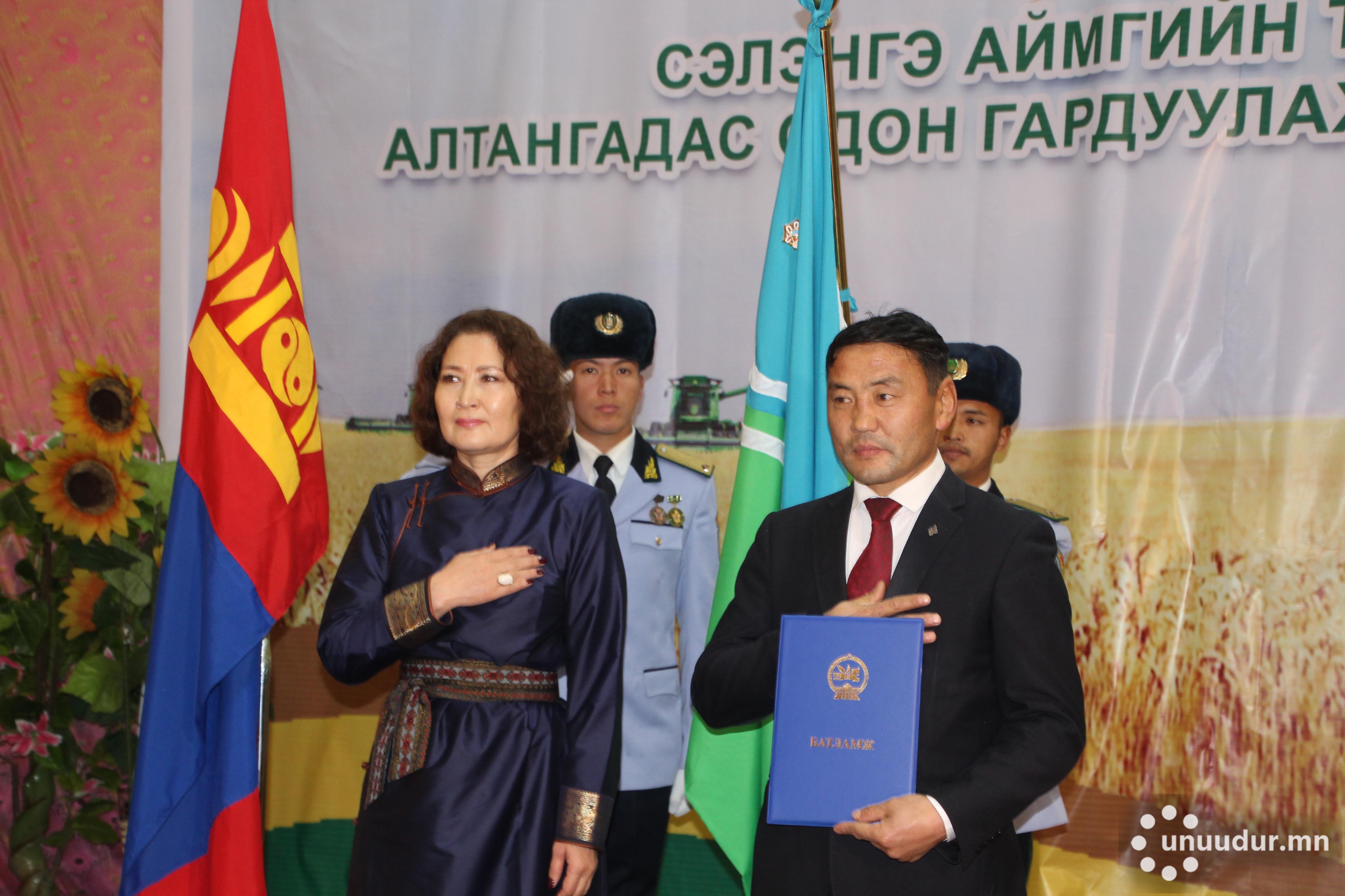 “Тулгар төрийн 2228 жил, Их Монгол Улс байгуулагдсаны 813 жил, Үндэсний эрх чөлөө, тусгаар тогтнолоо сэргээн мандуулсны 108 жил, Ардын хувьсгалын 98 жил, Ардчилсан хувьсгалын 30 жилийн ой, Атар газар эзэмшсэний 60 жилийг ойг тохиолдуулан Атрын – 1, 2, 3 дугаар аянд манлайлан оролцож, Монгол Улсын газар тариалан, мал аж ахуйн салбарын тэнцвэртэй хөгжлийг хангах болон улс, аймгийнхаа хөгжилд оруулж буй тус сумын иргэдийн өндөр хувь нэмрийг үнэлж Сэлэнгэ аймгийн Түшиг сумыг Төрийн дээд шагнал Алтан гадас одонгоор шагнасугай” гэжээ.