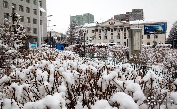 Улаанбаатар хотод үүлэрхэг. Цас орно. Салхи баруун өмнөөс баруун хойш эргэж секундэд 6-11 метр. 9-11 хэм хүйтэн байна.