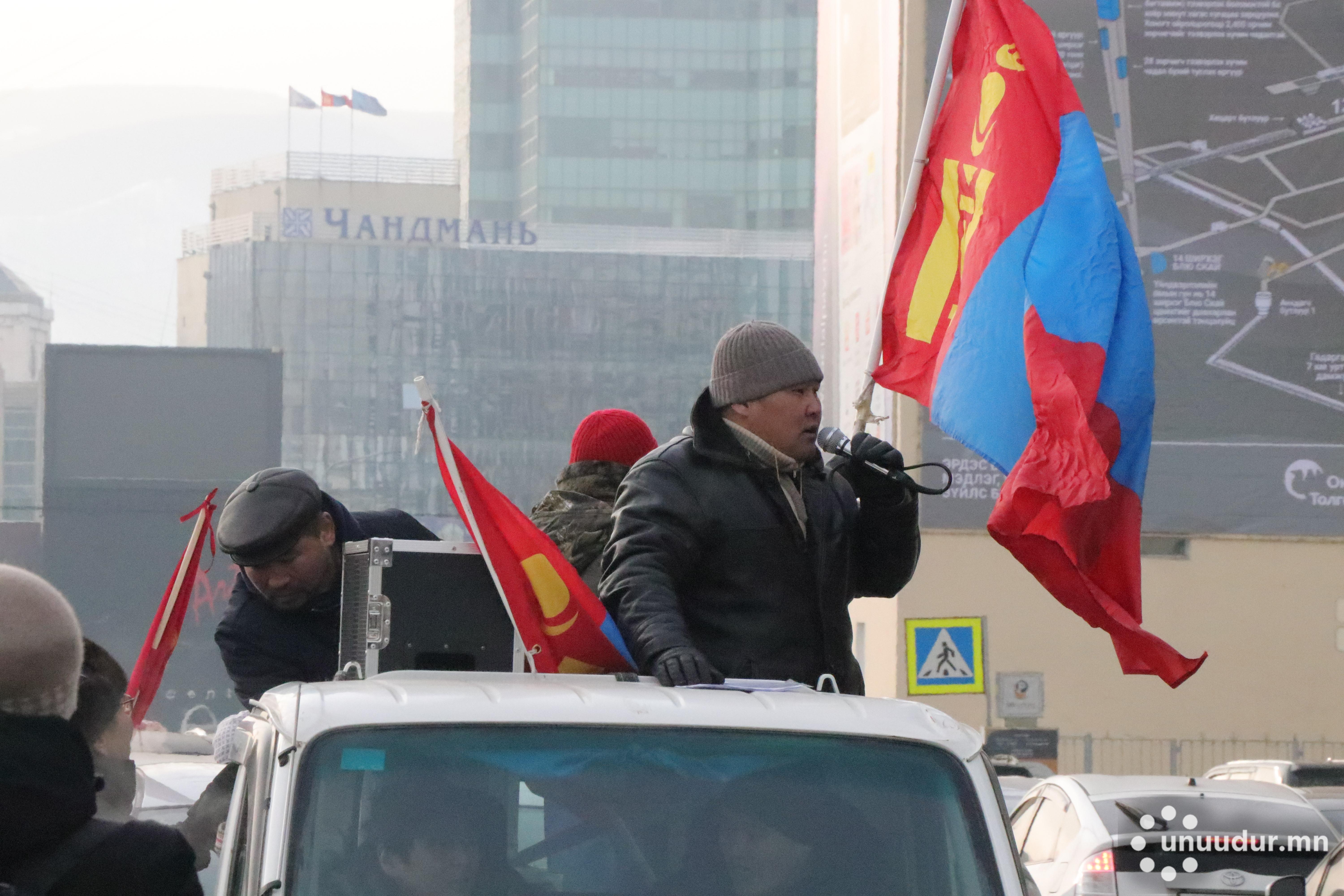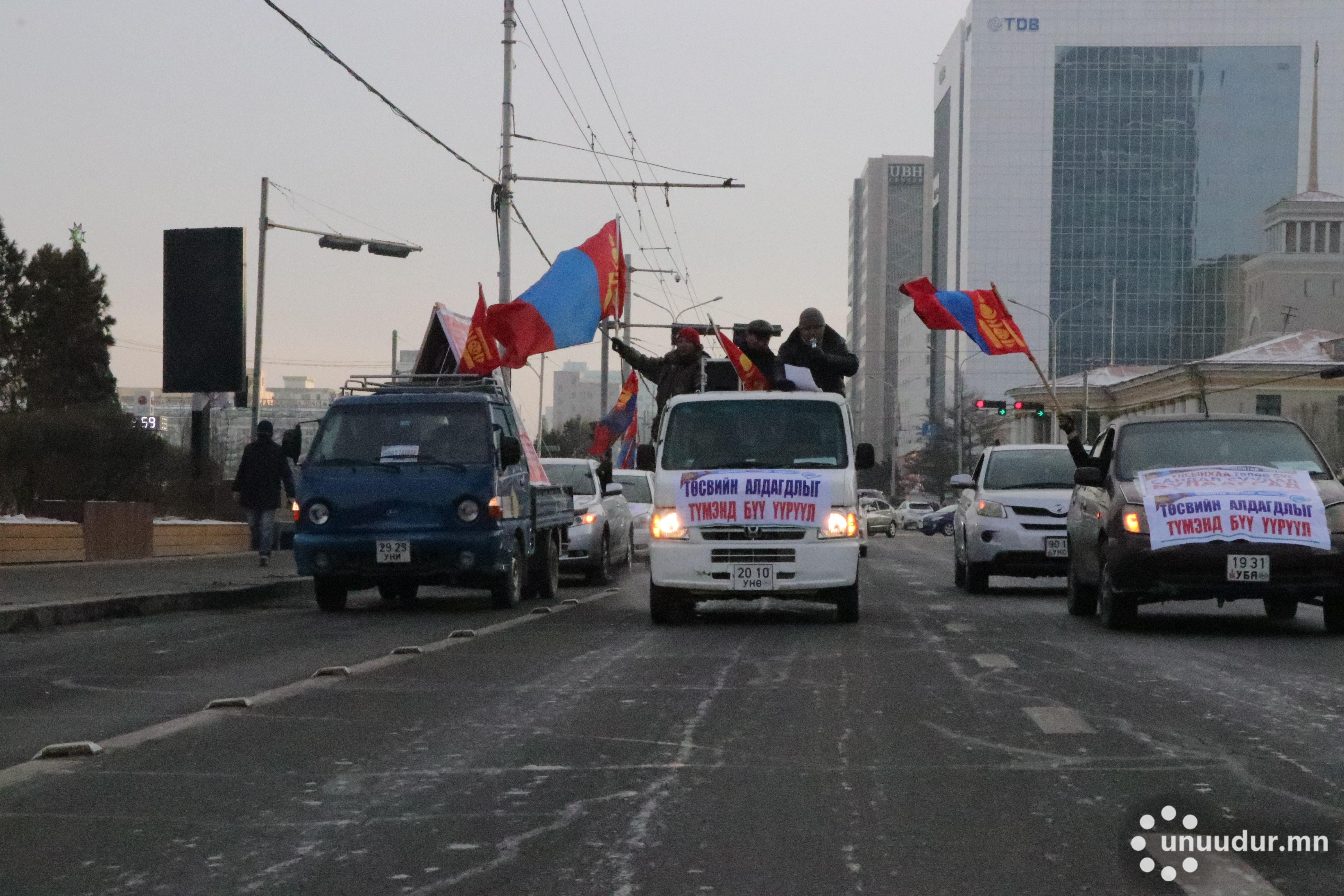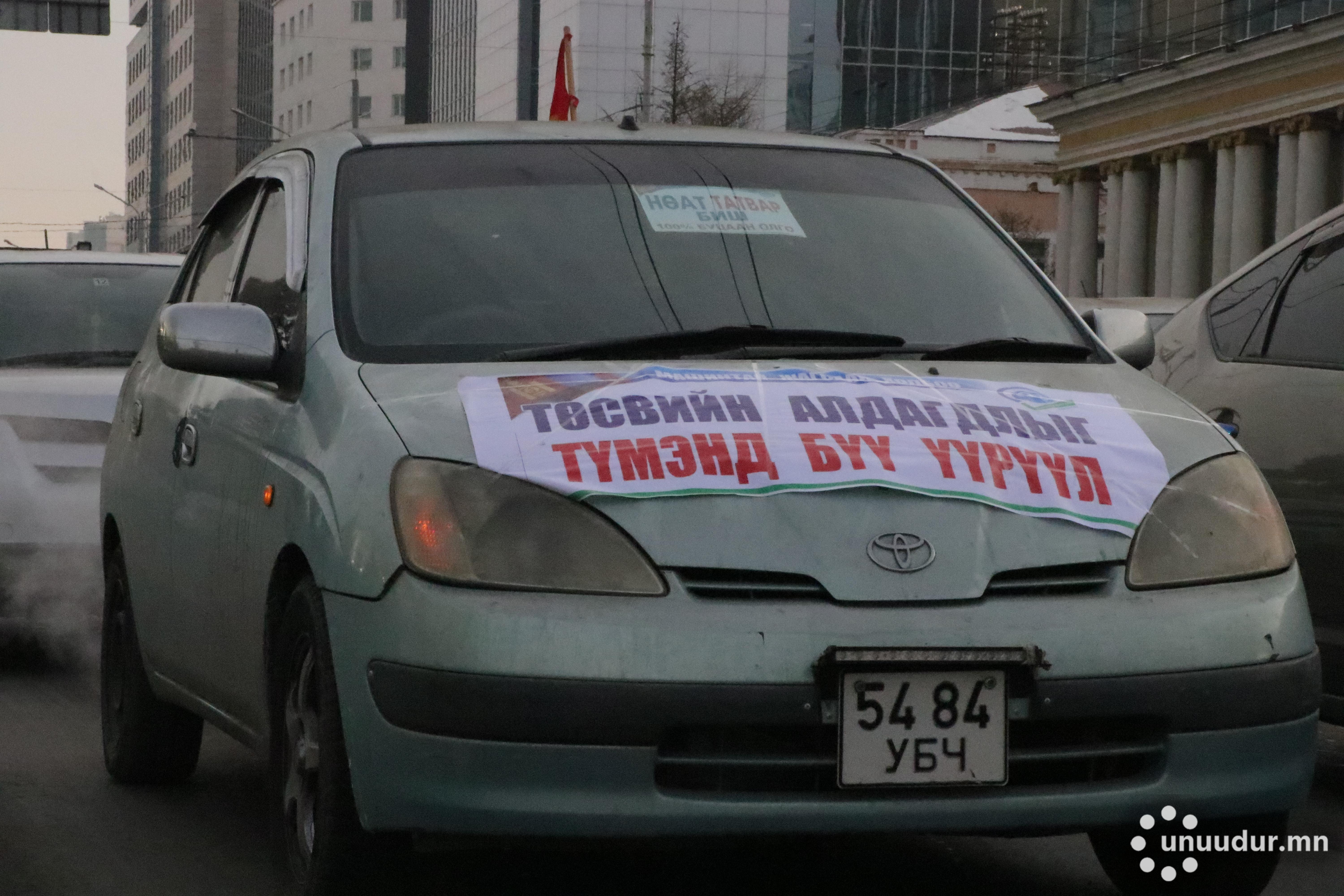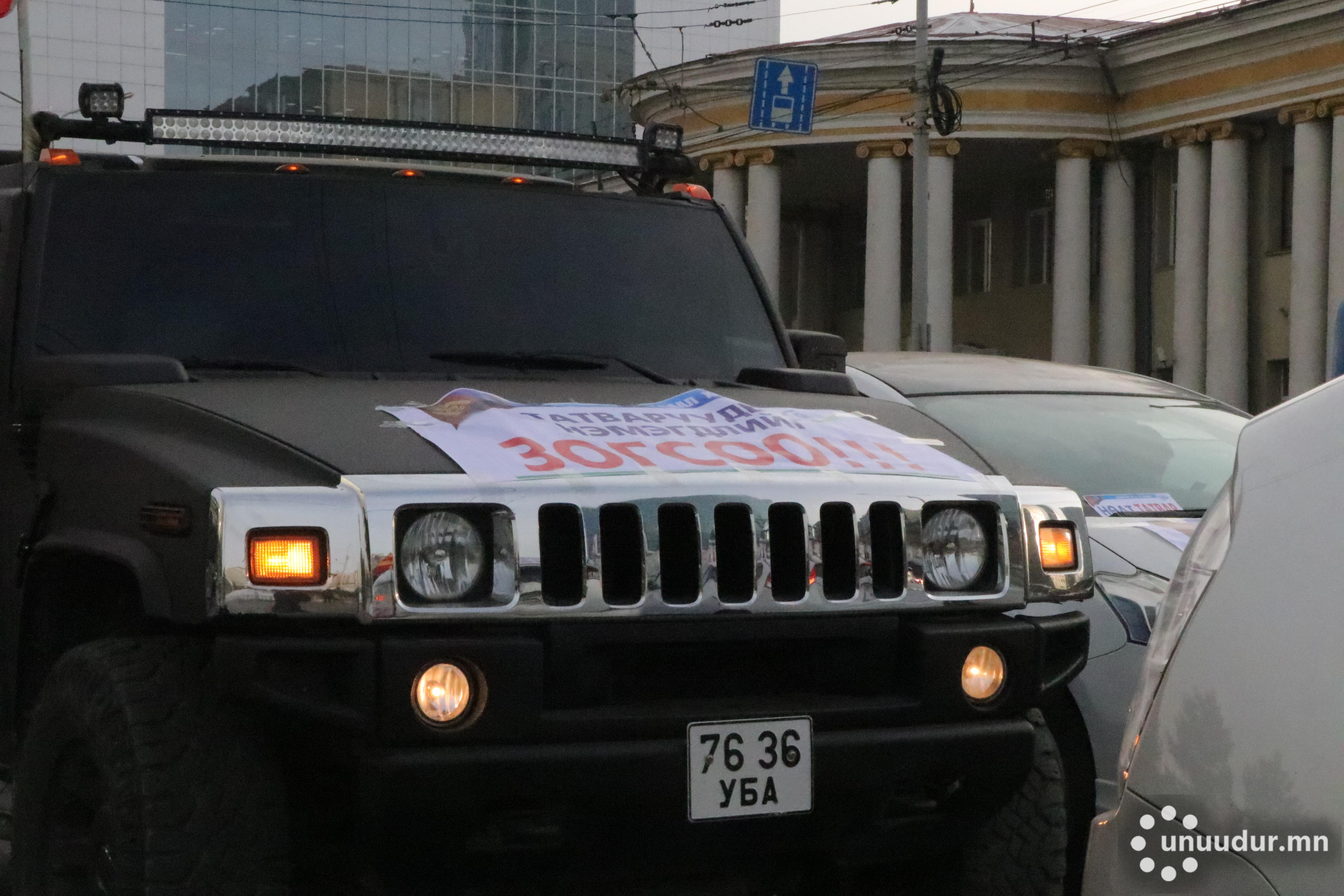 МАХН, Үнэн ба зөв нам, "Босоо хөх Монгол" ТББ хамтран Сүхбаатарын талбайг тойрон авто машинтай жагсаал зохион байгуулж байна.