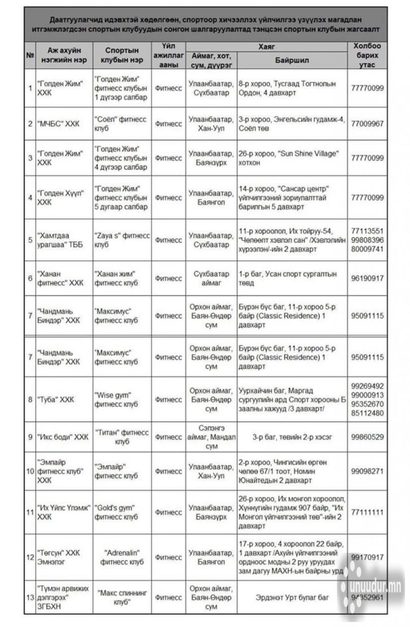 Ийнхүү 13 спорт клуб ЭМДЕГ-тай гэрээ байгуулан ажиллах юм. Тус газраас даатгуулагчдыг идэвхтэй хөдөлгөөн, спортоор хичээллэх үйлчилгээнд хамруулах магадлан итгэмжлэгдсэн спортын клубын сонгон шалгаруулалтын материалыг 2019 оны 11 дүгээр сарын 28-наас 2019 оны 12 дугаар сарын 20-нд хүлээн авч, шалгаруулсан байна.