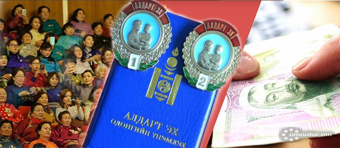 Алдарт эхийн нэгдүгээр зэргийн одонтой эхэд 200, хоёрдугаар зэргийн одонтой эхэд 100 мянган төгрөг олгодог. Харин хоёр одонтой эхэд давхцуулан мөнгөн тусламж олгодоггүй зохицуулалттай билээ. Өнгөрсөн жил 224 мянган эхэд, 29 тэрбум төгрөгийн одонгийн мөнгө олгосон байна.