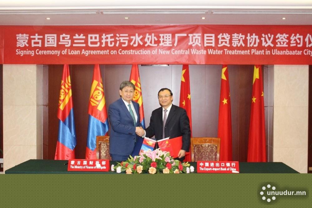 Уулзалтын дараа БНХАУ-ын Засгийн газраас Монгол Улсад олгосон 1 тэрбум ам.долларын хөнгөлөлттэй зээлийн хүрээнд хэрэгжүүлэхээр тохирсон “Улаанбаатар хотын Төв цэвэрлэх байгууламж шинээр барих” төслийн Тусгайлсан зээлийн хэлэлцээрт Сангийн сайд Ч.Хүрэлбаатар, БНХАУ-ын Экспорт-Импортын банкны дэд Ерөнхийлөгч Шие Пин нар гарын үсэг зуржээ.