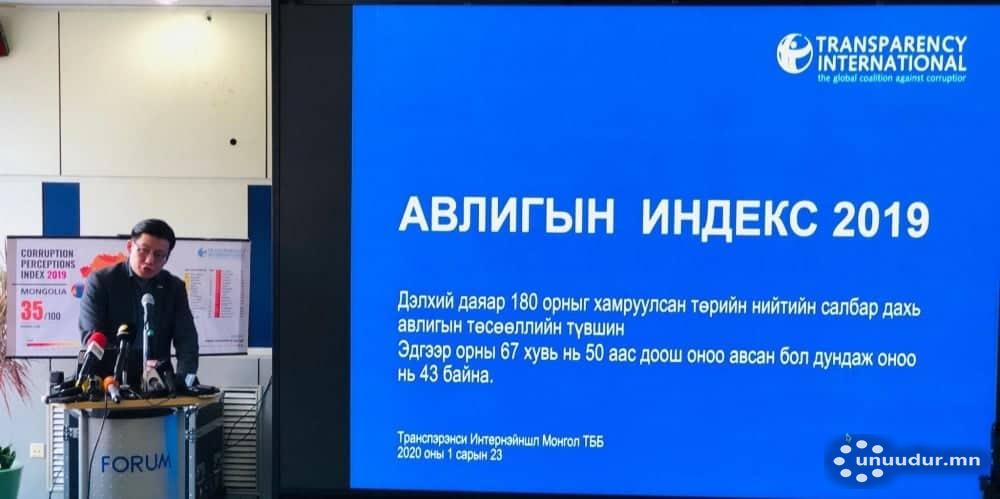 Берлин хотноо “Транспэрэнси Интэрнэшнл” олон улсын байгууллагаас зарласан 2019 оны Авлигын индексээс харахад дэлхийн улсуудын гуравны хоёрт авлигатай хийх тэмцэл удааширч ухралт гарсан байна. Хөгжингүй орнуудад ч мөн адил ийм үр дүн гарсан талаар өнөөдөр мэдээллээ.