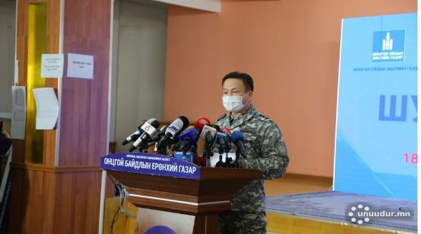 Улсын онцгой комиссын Шуурхай штабаас мэдээлэл хийж байна.