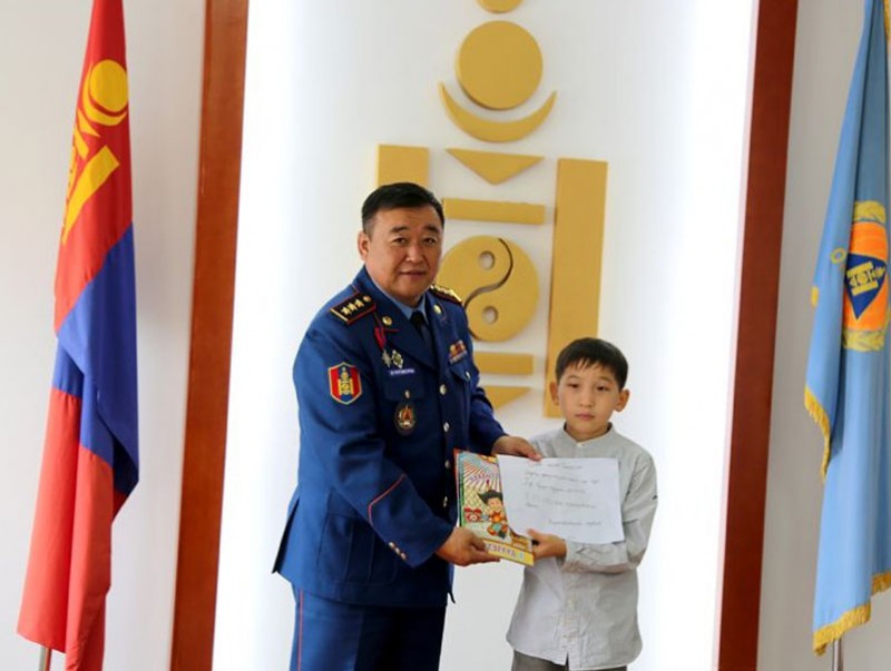 Тэрбээр өнөөдөр номныхоо орлогоос Улсын Онцгой комисст 500 000 төгрөгийг аавын хамт ирж гардууллаа.