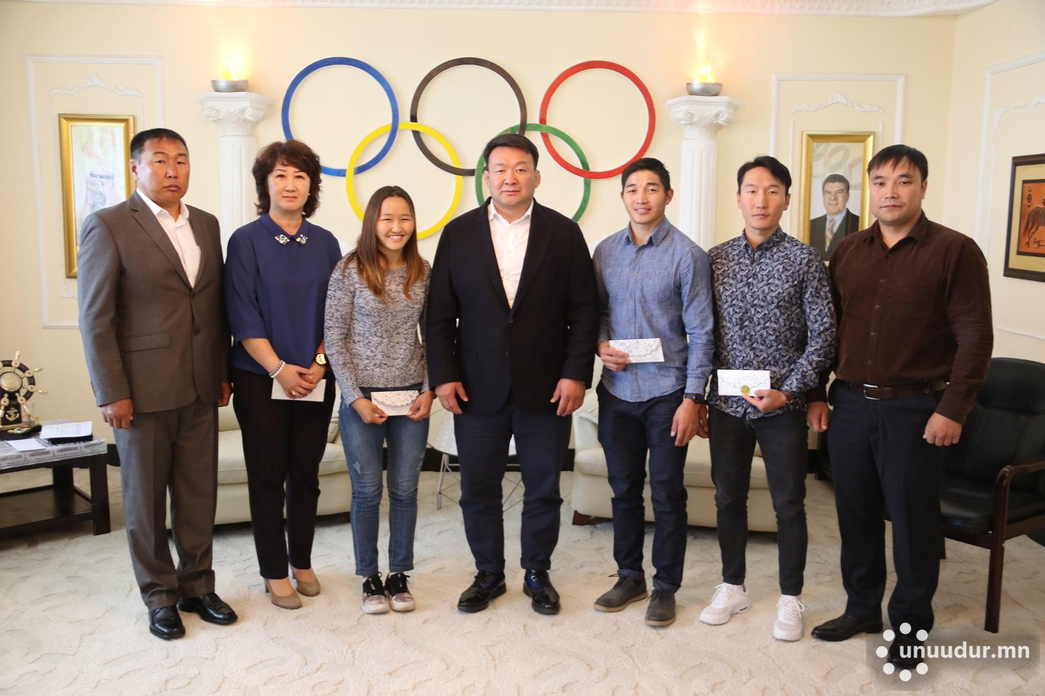 ОУОХ-МҮОХ-ноос хамтран хэрэгжүүлж буй “Бээжин-2022” олимпийн наадмын эрх авах өндөр магадлалтай тамирчдыг дэмжих хөтөлбөрт албан ёсоор батлагдсан цана, тэшүүрийн тамирчдад МҮОХ-ны Ерөнхийлөгч, “Бээжин-2008” олимпийн аварга Н.Түвшинбаяр тэтгэлэг олгож, спортын өндөр амжилт хүсэв.