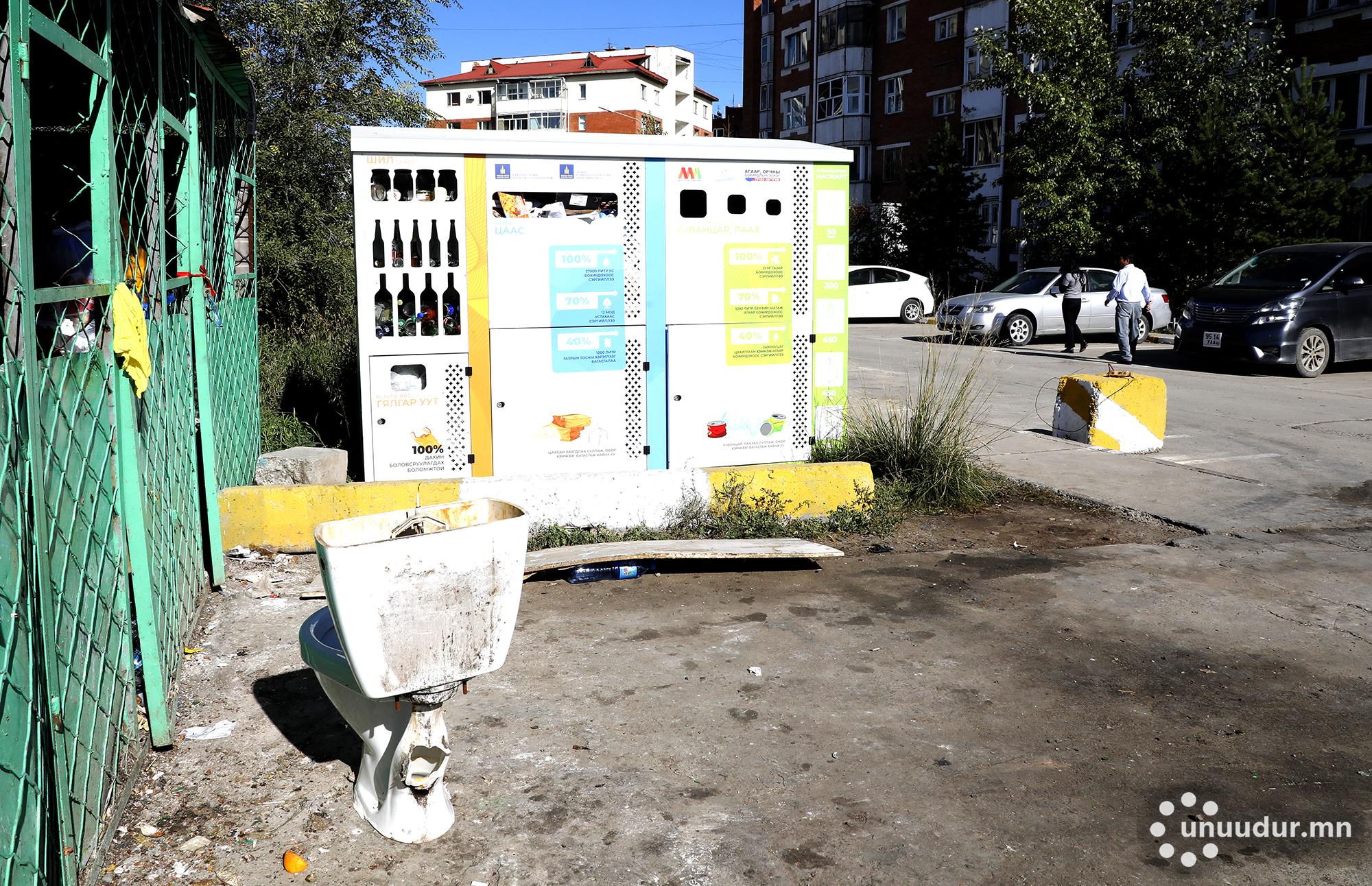 Хан-Уул дүүргийн I хороонд хог ангилан ялгах зориулалт бүхий найман сав байршуулжээ. Тус хорооны нутагт байрлах “Эрэл”, “Шинэ-Өргөө” зэрэг хотхоны хашаанд гурван ч савыг нэг метр хүрэхгүй зайд байршуулсан байв. Эл хогийн сав архи, шар айраг, даршилсан ногооны шил, цаас, хуучин хувцас, гялгар уут, хуванцар сав зэргийг ангилан хаях зориулалттай. Иргэд ч үүргээ сайн биелүүлж хогоо ялгаж хаяжээ. Зарим овор томтой цаасан хайрцгийг эвхэж, жижиглээд хогийн савны хажууд өрсөн байв. Гэвч сайны хажуугаар саар гэгчээр бүх хогийн сав ийм байсангүй. Хогийн савны хажууд ахуйн гаралтай, ангилан ялгах боломжгүй хаягдал хийх зориулалт бүхий цэг бий. Эвдэрч, муудсан эл цэгээс ялзарч, муудсан хаягдлын үнэр нэвт ханхлахын зэрэгцээ ойр орчмынхоо өнгө үзэмжийг гутаах аж. Үүнийг нь харсан хэн ч дээрх газрыг жишиг хороо гэхгүй л болов уу.