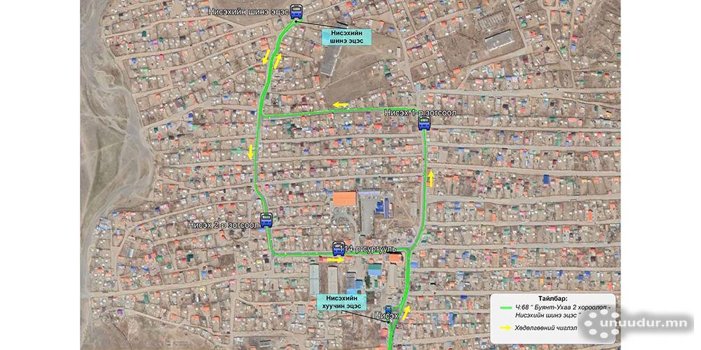 Иргэдийн хүсэлт, зорчих эрэлтэд нийцүүлэн Ч:68 “Буянт ухаа-2 хороолол-Нисэх” чиглэлийн замналыг сунгаж, өнөөдөр буюу 2020 оны 10 дугаар сарын 9-ний өдрөөс үйлчилгээг эхлүүлж байна. Ингэснээр шинээр тавигдсан 2.5 километр замаар автобус явж байгаа юм.