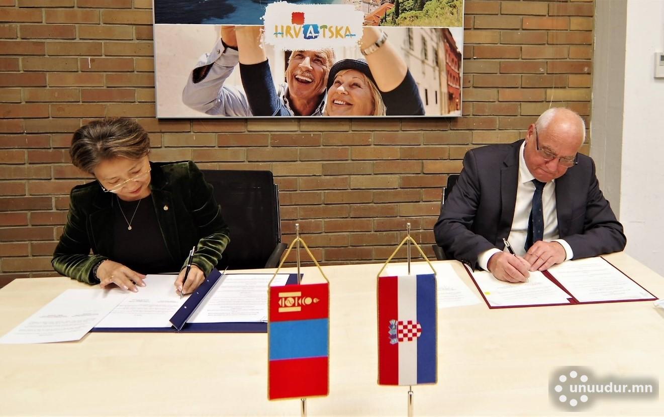 “Аялал жуулчлалын салбарт хамтран ажиллах тухай Монгол Улсын Байгаль орчин, аялал жуулчлалын яам, Бүгд Найрамдах Хорват Улсын Аялал жуулчлал, спортын яам хоорондын харилцан ойлголцлын санамж бичиг”-т талууд 2020 оны 10 дугаар сарын 15-ны өдөр Загреб хотноо гарын үсэг зурав. Уг баримт бичиг нь хоёр улс аялал жуулчлалын салбарт харилцан ашигтай, урт хугацааны, тогтвортой хамтын ажиллагааг хөгжүүлэх, чингэхдээ хамтарсан ажлын хэсэг байгуулж, сайн туршлага нэвтрүүлэх, хуваалцах, дэмжлэг үзүүлж ажиллах суурь болох юм.