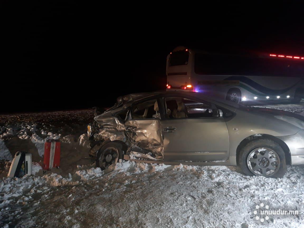 Өчигдөр /2020.10.20/ 19:30 цагийн орчим Төв аймгийн Өндөрширээт сумын “Бүс Хайрхан” гэх газрын авто замд Тоёота приус-20 маркийн автомашин Kia Granbird автобустай мөргөлдсөний улмаас зорчигч 23 настай, эмэгтэй Н амиа алдсан харамсалтай хэрэг гарчээ.