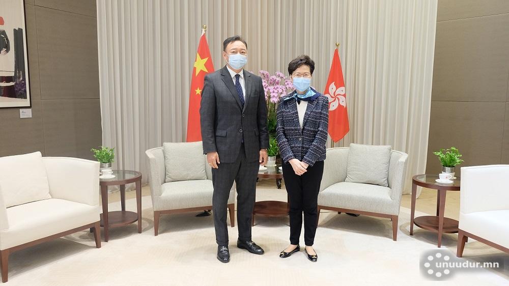 Монгол Улсаас Бүгд Найрамдах Хятад Ард Улсын Засаг захиргааны онцгой бүс Хонконгт суугаа Ерөнхий консул Г.Жаргалсайхан Хонконгийн Ерөнхий захирагч, хатагтай Кэрри Лэмтэй 2020 оны 10 дугаар сарын 22-нд уулзлаа.
