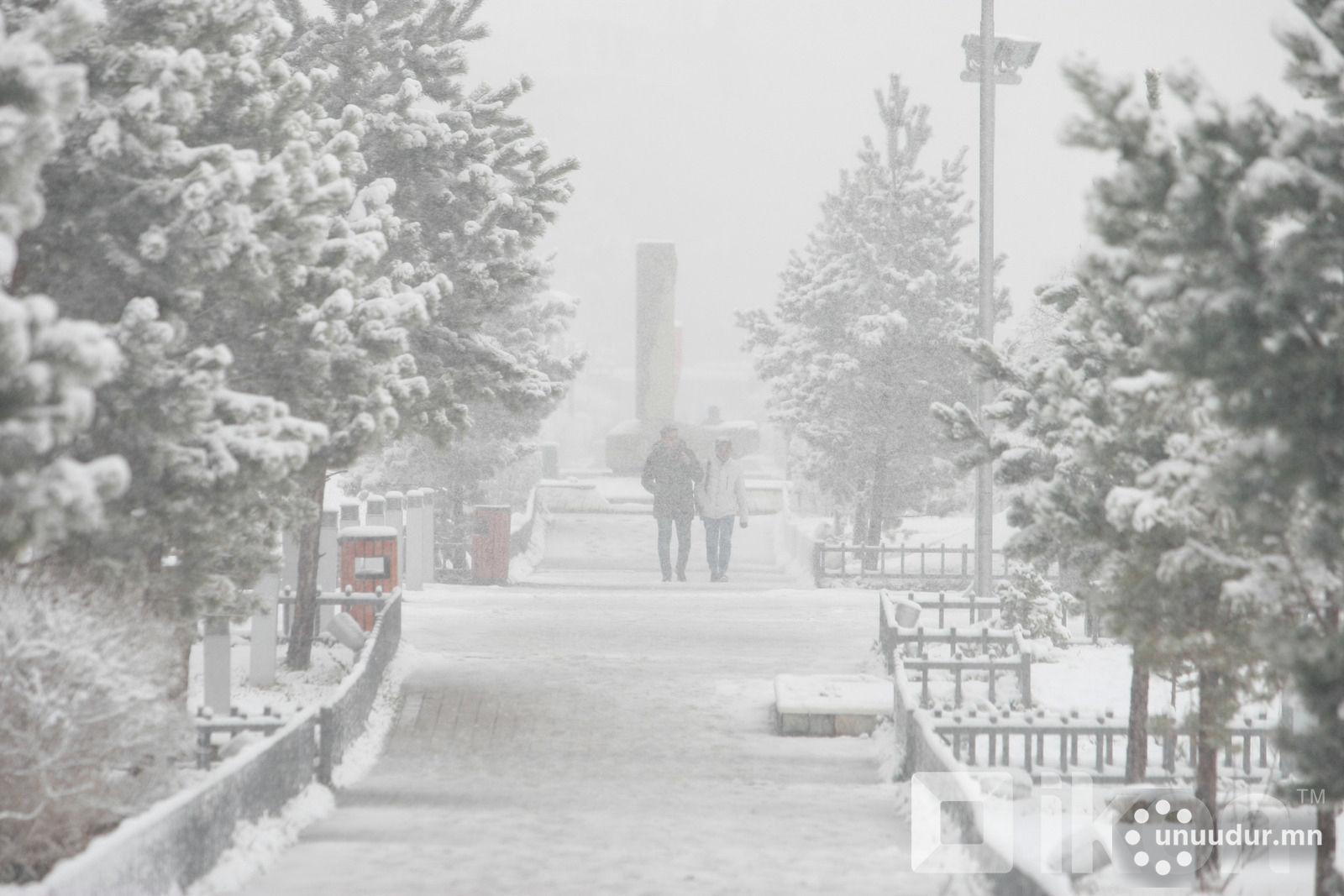 Нийслэлд үүлэрхэг. Цас орж, зөөлөн цасан шуурга шуурна. Салхи баруун хойноос секундэд 8-13 метр. Өдөртөө 1-3 хэм хүйтэн байна.