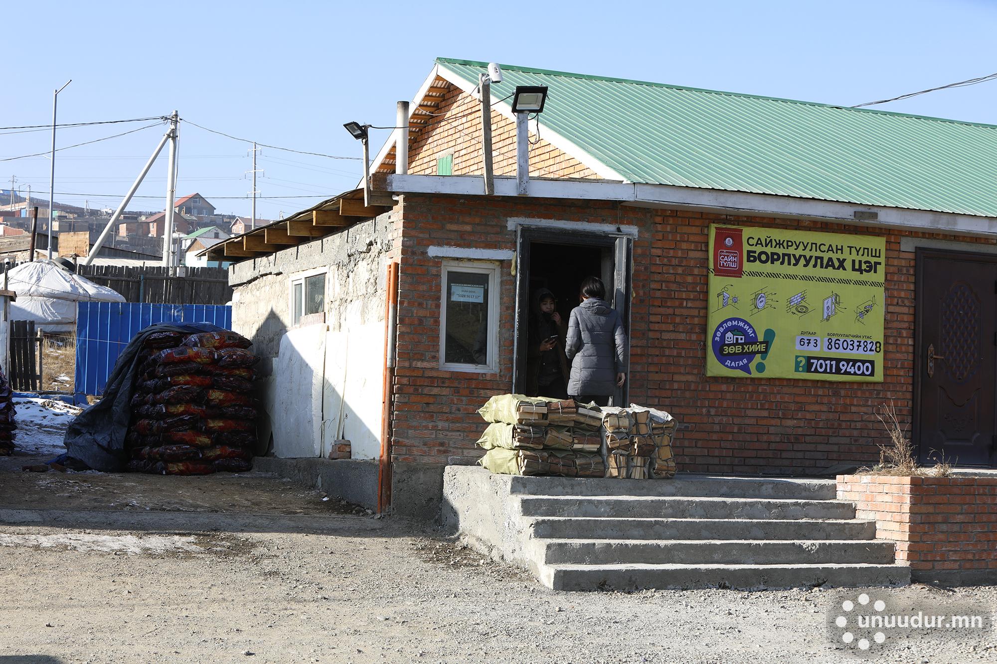 Энэ айл Сонгинохайрхан дүүргийн 36 дугаар хорооны нутаг, Их нарангийн эцэст бий. Эднийхээс нэг, хоёр буудлын цаана, бүр хэдхэн алхмын зайд сайжруулсан түлш борлуулах цэг байв. Хамгийн ойр байх түлш борлуулдаг бүсгүй “Манайх энэ сарын 4-нөөс үйл ажиллагаа явуулж эхэлсэн. Борлуулалтын эрх авах гэж сар гаруйн хугацаанд хөөцөлдөж, бөөн ажил боллоо. Түлшээ хангалттай нөөцөлдөг ч борлуулалт үнэхээр муу байна. Өдөрт 50 шуудайг борлуулдаг. Нэг айлд зургаан шуудайг өгөх ёстой гэж тооцвол долоон өрх л авдаг гэсэн үг. Гэвч тийм олноор нь авах айл энд ховор. Хагасалж, хувааж авах тохиолдол ч байдаг юм” хэмээн ярилаа.