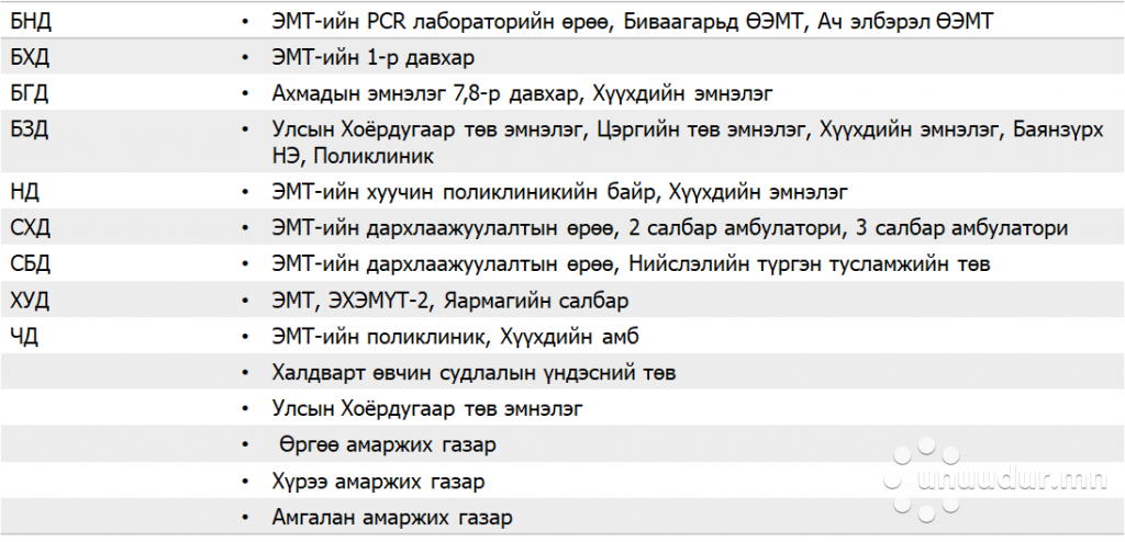 Ингээд Нийслэлийн "Ковид-19"-ын эсрэг дархлаажуулалт хийх цэгүүдийн байршлыг танилцуулж байна.