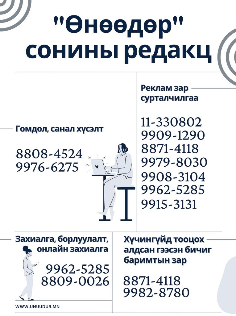 АНХААРУУЛГА: Уншигчдын бичсэн сэтгэгдэлд unuudur.mn хариуцлага хүлээхгүй болно. Манай сайт ХХЗХ-ны журмын дагуу зүй зохисгүй зарим үг, хэллэгийг хязгаарласан тул Та сэтгэгдэл бичихдээ бусдын эрх ашгийг хүндэтгэн үзнэ үү. Хэм хэмжээ зөрчсөн сэтгэгдлийг админ устгах эрхтэй.