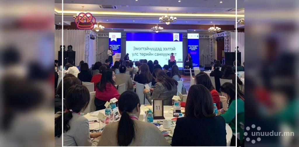 Харин эл санхүүжилтийн өнөөгийн нөхцөл байдал эмэгтэйчүүдийн улс төрийн оролцоонд үзүүлж буй үр нөлөөнд дүн шинжилгээ хийж, тулгамдаж буй саад, бэрхшээлүүдийг арилгах шийдлийн хувилбаруудыг хэлэлцэх зорилготой форумыг Эмэгтэйчүүдийн манлайллын сүлжээнээс өчигдөр зохион байгууллаа. “Эмэгтэйчүүдийн улс төрийн манлайлал: Мөнгө ба төлөөлөл” сэдэвт тус форумыг НҮБ-ын Хөгжлийн хөтөлбөрийн суурин төлөөлөгч Илэйн М.Конкиевич, УИХ-ын дэд дарга С.Одонтуяа, УИХ-ын даргын нийгмийн бодлогын зөвлөх Ц.Цогзолмаа нар үг хэлж, нээсэн бөгөөд МУИС-ийн ахлах багш, доктор Б.Эрдэнэдалай, “Сонгогчдын боловсрол төв”-ийн тэргүүн С.Оюунтуяа зэрэг судлаач илтгэл хэлэлцүүлж, оролцогчидтой санал бодлоо хуваалцсан. Эмэгтэйчүүдийн улс төрийн манлайлал, оролцоог нэмэгдүүлэхэд мөнгө хамгийн их саад болж байгаатай санал нэгдсэн юм.