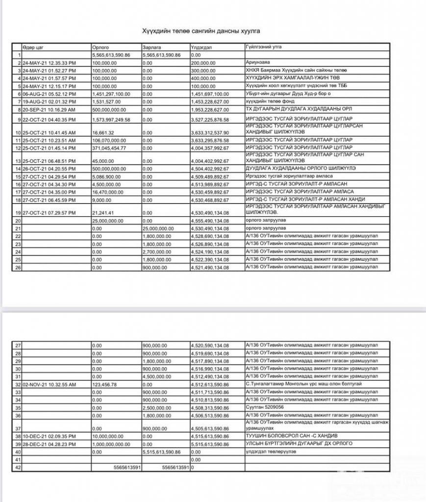 Хүүхдийн төлөө санд 5.5 тэрбум төгрөг төвлөрсөнийг Хөдөлмөр, нийгмийн хамгааллын сайд А.Ариунзаяа мэдээллээ. Батлагдсан хуулийн дагуу төсвөөс гурван төрлийн үйл ажиллагаанд зарцуулахыг зөвшөөрдөг. Тодорхой хэлбэл, хүүхдэд зориулсан бүтээн байгуулалт, олон улсын уралдаан тэмцээнд ялсан хүүхдийн урамшуулал, хөгжлийн бэрхшээлтэй хүүхэд олон улсын тэмцээн уралдаанд оролцох эрх авсан бол бэлтгэл хангахад дэмжлэг үзүүлж болно. Гэр бүл, хүүхэд, залуучуудын хөгжлийн газраас энэ өдрүүдэд Хүүхдэд зориулсан бүтээн байгуулалтын төсөл шалгаруулахаар ажиллаж буй. Төслийг гуравдугаар сарын 15-ны өдөр хүртэл хүлээн авах аж. Улмаар тусгайлсан ажлын хэсэг хэрэгжүүлэх төслийг шалгаруулах юм.