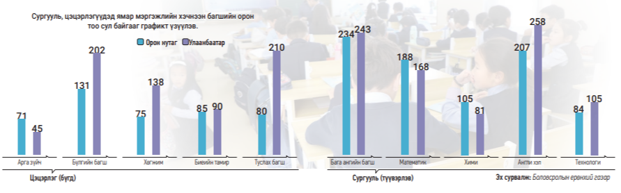 Харин сургуулийн өмнөх боловсролын байгууллагуудад 1147 багш, ажилтны сул орон тоо үүсжээ. Сонирхуулахад, өнгөрсөн хичээлийн жилд багш хөтөлбөрөөр бакалаврын зэрэгтэй 2877 оюутан төгс-сөнөөс 163 нь л багшлах эрхийн сургалтад хамрагдаж, мэргэжлээрээ ажиллахаар шийдсэн байна.