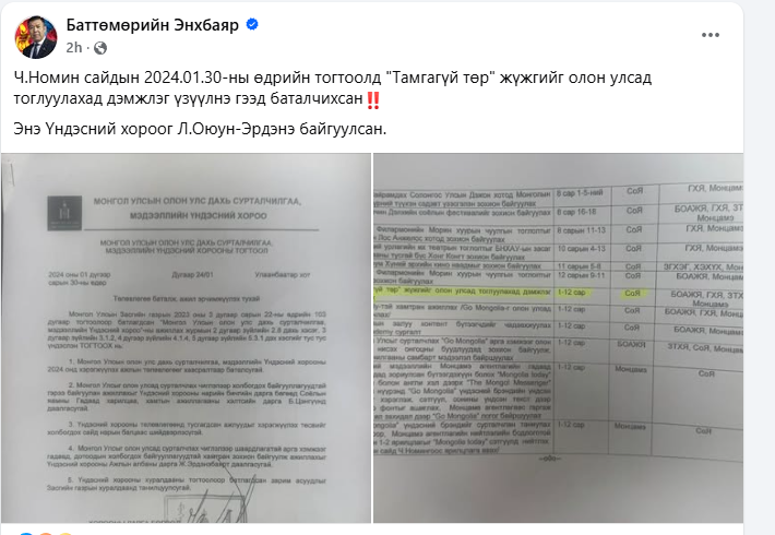 Б.Энхбаяр сайд Монгол Улсын Олон Улс дахь сурталчилгаа, мэдээллийн Үндэсний хорооны гишүүн, төлөвлөгөөг нь батлалцсан хүний хувьд Монгол Улс хуультай, бодлогын процесс дараалал, төлөвлөлгөө, гүйцэтгэл, хяналтын механизмтай байдгийг мэдэхийн дээдээр мэдэж байгаа.