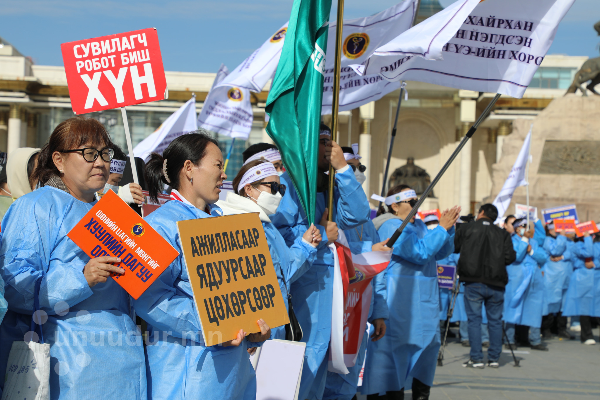Эрүүл мэндийн салбарын 70 мянга орчим эмч, сувилагч, асрагч, ажилчин, албан хаагч Монголын 3.5 сая хүн амд эмнэлгийн тусламж, үйлчилгээ үзүүлж байна. Гэвч тэд энэ сарын 13-наас буюу нөгөөдрөөс улс орон даяар ажил хаяж, үндсэн цалингаа 3.5 сая төгрөгт хүргэхийг шаардана. Эмч, сувилагч нар эрхийнхээ төлөө, цалин хангамжаа сайжруулахаар өнгөрсөн хугацаанд цөөнгүй жагсаал, цуглаан зохион байгуулж, тэмцэж ирсэн ч энэ удаагийнх шиг шийдэмгий, нийтээрээ ажлаас гарах өргөдөл өгөхөд бэлэн гэдгээ иргэд, олон нийт, төр засагт хүртэл дуулгаж байсангүй. Гэвч ажил хаях тухай мэдэгдсэнээс нь хойш эрх баригчид тэднийг үл тоомсорлон, ажлаа хийхгүй хаа холддог юм гэсэн байр сууринаас хандаж байгааг эсэргүүцэн Монголын эрүүл мэндийн ажилтны үйлдвэрчний эвлэлийн холбоо (МЭМАҮЭХ)-ныхон өчигдөр ээлжит бусаар хуралдаж, төр засагт хатуухан хэдэн үг дайв.
