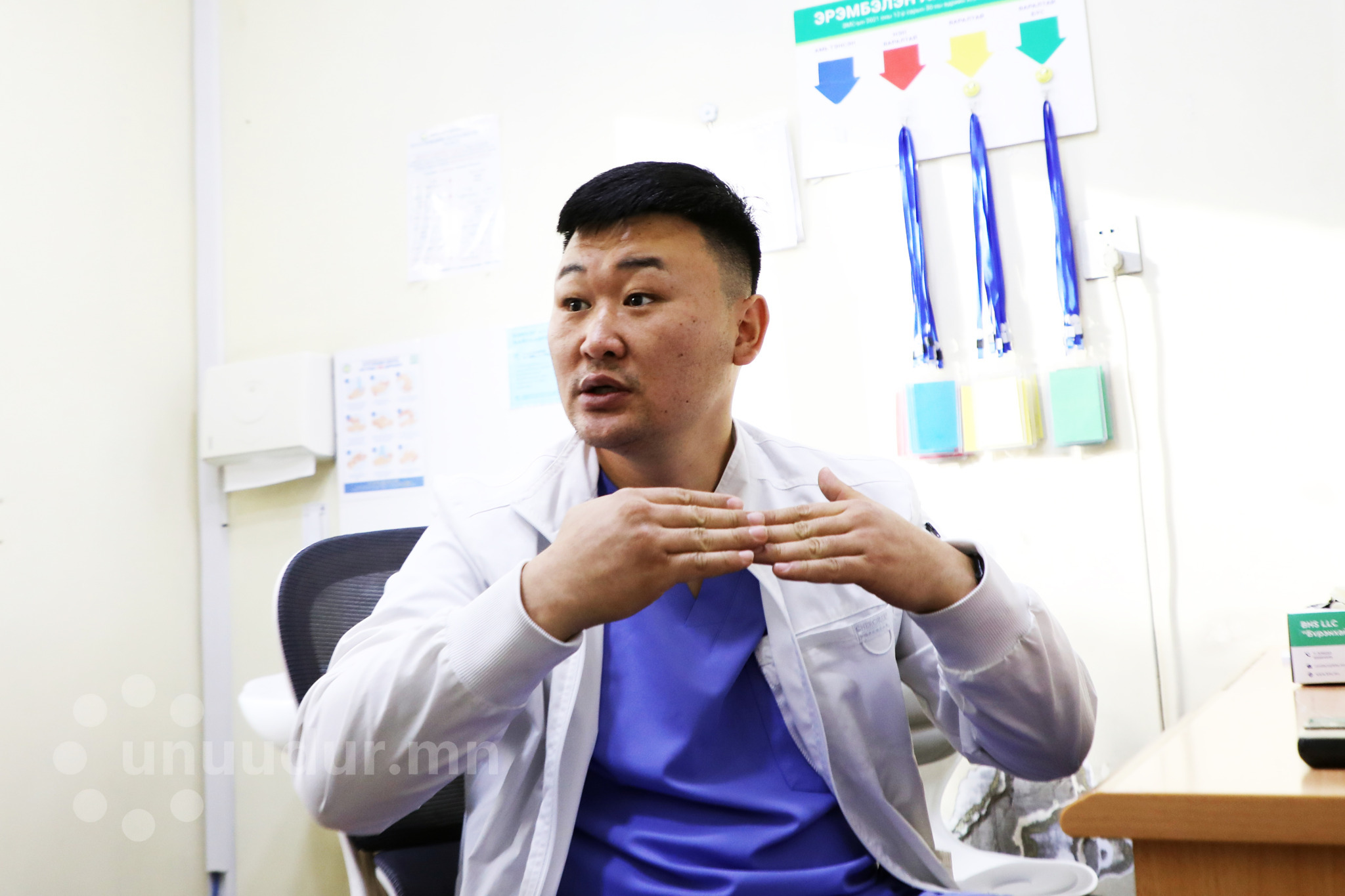 Яаралтай, түргэн тусламжийн тасгийнхан амь тэнссэн өвчтөнд шуурхай үйлчлэхийн зэрэгцээ эмнэлгийн хонгилд эмчид үзүүлэхээр дарааллаа хүлээн суугаа өвчтөнүүдийг бүртгэлийн дагуу үзэж, шаардлагатай үйлчилгээ үзүүлж байв. Эл өдөр дөрвөн эмч үзлэг, оношилгоо хийж байлаа. Түүний нэг П.Баттулга эмчтэй уулзаж, ажлынх нь онцлогийг сонирхлоо. Тэрбээр АШУҮИСийг 2017 онд төгсөөд, Замын-Үүдийн эмнэлгийн Яаралтай тусламжийн тасагт ажиллаж байж. 2020 оноос ГССҮТ-д ажиллаж эхэлсэн бөгөөд энэ тасагтаа гурван жил болж буй гэнэ. Үзлэгийн өрөөнд түүнээс гадна резидент эмч Х.Тэмүүлэн, АШУҮИС-ийн VI дамжааны оюутан Т.Түмэнхүслэн нар байв. Дадлагажигч оюутан охин үзүүлж буй хүн бүрийн овог, нэр, өвч ний түүхийг тэмдэглэх аж. Харин Х.Тэмүүлэн эмчийн хэлсэн оношийг компьютерт бичиж, үйлчлүүлэгчийн биеийн байдлыг хүнд, хөнгөнөөр нь эрэмбэлэхэд тусалж байсан. Ихэнхдээ зовуурь ихтэй, хүнд хүмүүс ирсээр.