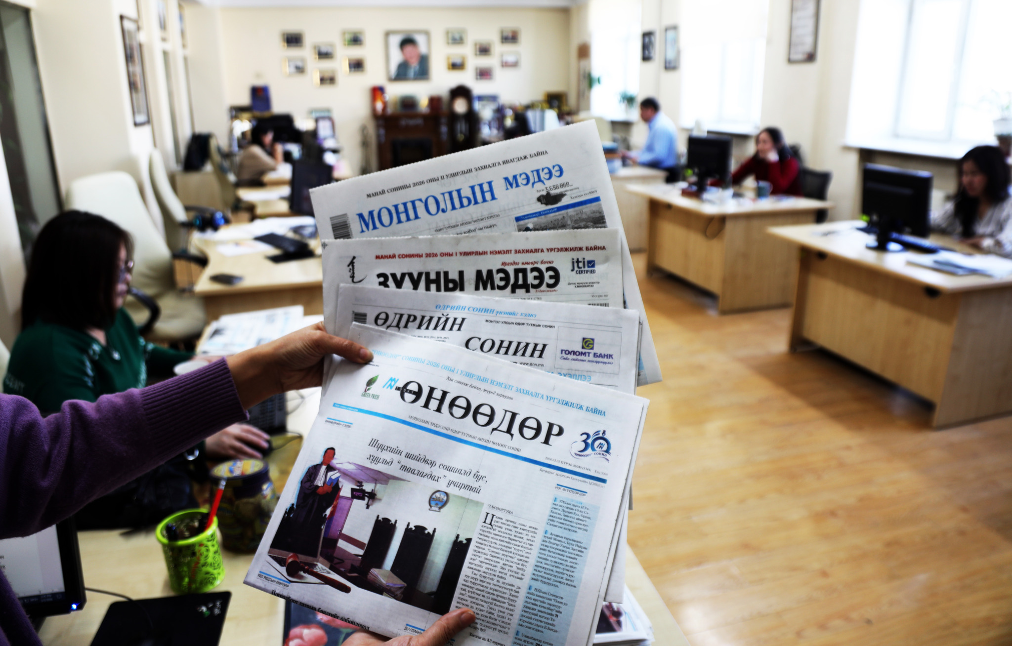 Харамсалтай нь, манай улсын төр, засгаас өдөр тутмын сонинуудыг сүүлийн хэдэн жил хавчих бодлого баримталж ирсэн гэхэд хилсдэхгүй. Өргөн нэвтрүүлгийн тухай хэмээх хууль баталж, өеөдөх шахаад байсан телевизүүдийг санхүүгээр дэмжсэн. Өдгөө хуулийн дагуу жагсаалтад багтсан телевизүүд сард хамгийн багадаа 100 сая төгрөг авч буй. Тэдэнд атаархсангүй ээ. Мэргэжил нэгтнүүдийн маань нэг хэсэг нь ч гэсэн санхүүгийн гачаал, зовлонгоос ангижирч буй нь сайн хэрэг. Харин яагаад сонинг шоовдорлоод орхичихов оо, телевиз өмнөөс нь төрж, сонин араас нь гарсан юм уу гэсэн зүй ёсны гомдол төрөөд болдоггүй ээ.