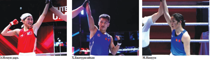 Манай улсад энэ сарын 10 хүртэл үргэлжлэх “Улаанбаатар-2026” сонирхогчийн боксын насанд хүрэгч дийн Азийн АШТ-ий тулаанууд ид өрнөж байна. Тулааны спортын хорхойтнуудыг догдлуулж, “Аса арена”-д суудлаас нь өндөлзүүлж буй тус тэмцээний медалийн төлөөх тоглолт эхэлсэн. Тав дахь өдрийн тоглолтод Монголын боксын үндэсний шигшээ багийнхнаас эрэгтэйчүүдийн 55 кг-д Х.Билгүүнсайхан хүрэл медалийн төлөө Туркменистаны тамирчин Майлис Шадурдиевтэй тулалдаж, хажуугийн шүүгчдийн санал нэгтэй шийдвэрээр яллаа. Тэгвэл эмэгтэйчүүдээс 48кг-д Э.Номун-дарь Вьетнамын Тхи Куинь Ань Фамыг, 60 кг-д М.Намуун Узбекистаны Муштарийбону Иброхимжоноваг 4:1-ээр хожиж, мөнгөн медалийн төлөө тоглохоор боллоо.