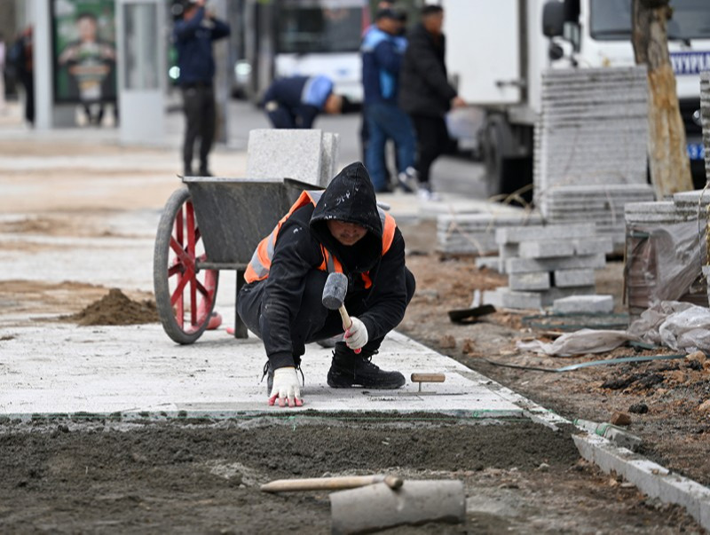 - “АПУ” ХК-ийн уулзвараас Төв шуудангийн уулзвар хүртэл замын зүүн талын 5672 ам метр талбайн явган хүний замын хавтанг хучиж байгаа юм.