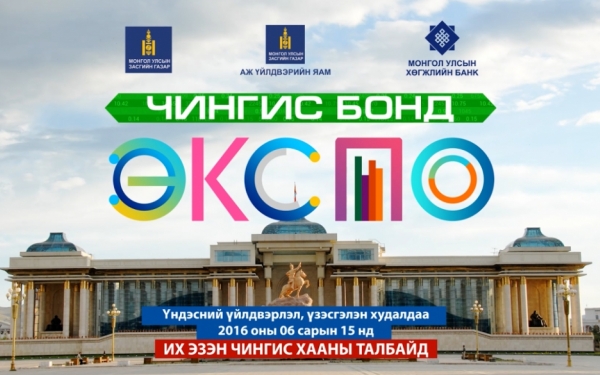Монгол Улсын Засгийн газар, Хөгжлийн банк хамтран “Чингис Бонд Экспо” үзэсгэлэн худалдааг өнөөдөр Чингисийн талбайд зохион байгуулна. Нээлтийн ёслол 11.15 минутад эхэлж, Монгол Улсын Ерөнхий сайд Ч.Сайханбилэг, Хөгжлийн банкны гүйцэтгэх захирал Н.Мөнхбат нар нээж үг хэлнэ. Чингис бондоос санхүүжилт авсан 129 аж ахуйн нэгж, компаниуд оролцох юм байна. Энэ үеэр Авто замын төсөл, Гудамж төсөл, Инженерийн дэд бүтцийн төсөл, ДЦС-4 хүчин чадал нэмэгдүүлэх, Таван толгойн цахилгаан станц, Эгийн голын усан цахилгаан станц зэрэг томоохон төслүүдийг танилцуулна.