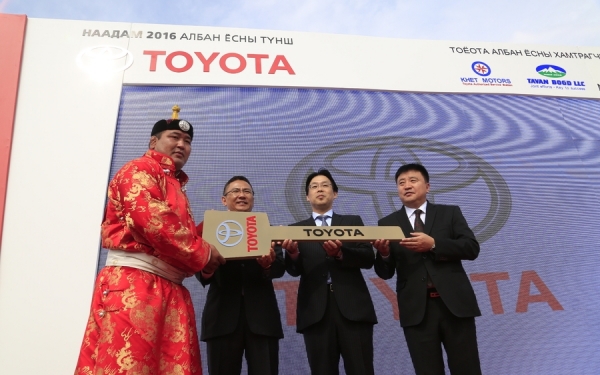 Уулзалтын дараа Тулгар төрийн 2225, Их Монгол Улсын 810, Ардын хувьсгалын 95 жилийн ой үндэсний их баяр наадмын үндэсний бөхийн барилдаанд 10 даван түрүүлсэн Монгол Улсын Аварга Ч.Санжаадамбад “Тоyoтa мотор” корпорациас “Ланд крузер-200” авто машиныг гардуулан өгөх ёслолын ажиллагаа боллоо. Энэхүү арга хэмжээнд нийслэлийн ИТХ-ын дарга Ц.Сандуй, нийслэлийн Засаг дарга бөгөөд Улаанбаатар хотын Захирагч, Үндэсний их баяр наадмыг зохион байгуулах хорооны дарга, С.Батболд нар оролцож, түрүүлсэн бөхөд баяр хүргэлээ