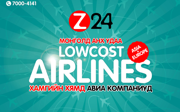 Онгоцны тийзээр үйлчилдэг “Айрбүүк Z24” компани нэгэн шинэ үйлчилгээ нэвтрүүлж буйгаа өчигдөр сэтгүүлчдэд танилцуулав. Энэ нь Ази, Европын “Low cast carrier” буюу зорчигчдод хамгийн хямд үнэ санал болгодог авиа компаниудын тасалбарыг дэлхийн хаанаас ч монгол хэлээр захиалан авч, аялах боломжтой үйлчилгээ юм.