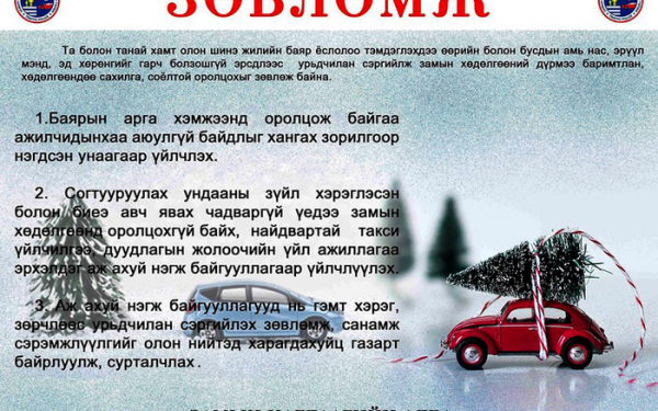 Иймд Замын цагдаагийн албанаас хүлээн авалт хийх, баяр ёслол тэмдэглэхдээ өөрийн болон бусдыг аюулгүй байдлыг хангаж, гэмт хэрэг, зөрчлөөс урьдчилан сэргийлэх, замын хөдөлгөөний дүрмээ баримтлан, хөдөлгөөндөө соёлтой оролцож тэмдэглэхийг уриалж дараах зөвлөмжүүдийг хүргэж байна.
