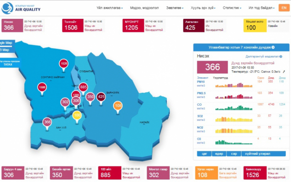 Тус сайтад +501-ээс дээших бохирдлыг нэн аюултайд тооцсон анхааруулга байна. Гэтэл үзүүлэлт нь энэ тооноос даруй гурав дахин их байгаа бүс ч байна.