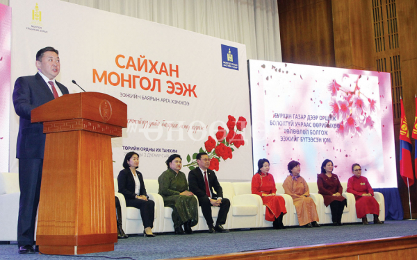 УИХ-ын дарга М.Энхболд арга хэмжээг нээж, үг хэлэхдээ, Монгол Улс өнөөгийн хөгжилтэй золгоход эмэгтэйчүүдийн оруулсан хувь нэмэр өндөр болохыг онцлоод, “2016 оны байдлаар төрийн албанд ажиллагсдын 59.4 хувь нь эмэгтэйчүүд байна. Энэ нь төр түшиж буй эмэгтэйчүүд эрчүүдээс илүү байна гэсэн үг. Харамсалтай нь, тэдний дундаж цалин эрчүүдийнхээс 10 гаруй хувиар доогуур байна” гэж тодотгосон.