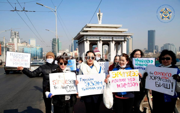 МЗХ-оос санаачлан 3 дахь жилдээ Олон улсын эмэгтэйчүүдийн эрхийг хамгаалах өдрийг тохиолдуулан эмэгтэйчүүдийн нийгэмд эзлэх байр суурийг нэмэгдүүлэх дэмжих, эмэгтэйчүүдийн дуу хоолойг олон нийтэд хүргэх, тулгамдаж буй асуудлаа ярилцах зорилгоор “Хүчирхэг эмэгтэйчүүд амар тайвны гүүр болдог” тайван жагсаалыг зохион байгууллаа. Тус жагсаалын зорилго нь гуравдугаар сарын 8-ны өдрийг баярын өдөр болгон тэмдэглэхээс илүүтэй эмэгтэйчүүдийн эрхийг хамгаалах, тэдэнд тулгамдаж байгаа асуудлыг хөндөх, гарах гарцыг эрэлхийлэх, дуу хоолойгоо олон нийтэд хүргэх өдөр болгон тэмдэглэдэг болгоход оршиж байгаа гэж зохион байгуулагчид үзэж байгаа аж.