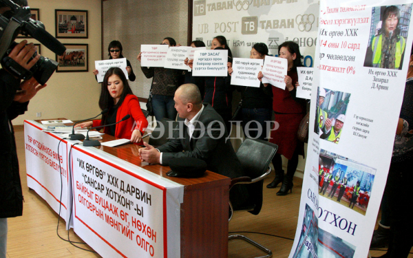 “Их өргөө” компанийг үүсгэн байгуулагч, УИХ-ын гишүүн асан Д.Арвинтай уулзахад “Нөхөн олговор өгөх боломжгүй, мөнгө байхгүй” гэж зандардаг гэнэ. Оршин суугчид өдгөө Ерөнхий сайдад албан бичиг хүргүүлжээ. Долоо хоногийн дотор ямар нэг хариу өгөхгүй бол өлсгөлөн зарлахад бэлэн гэдгээ энэ үеэр мэдэгдсэн юм.