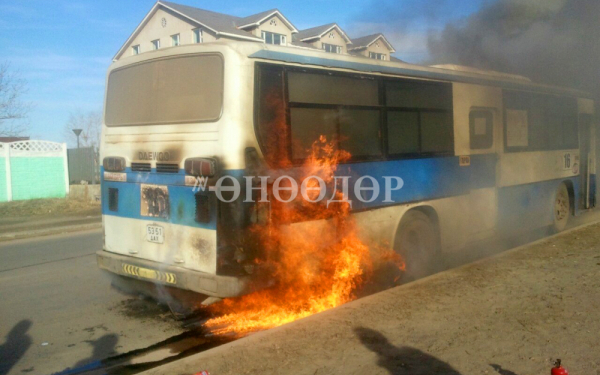 Тус аймгийн Онцгой байдлын газрын Гал унтраах, аврах 22 дугаар ангийнхан дуудлагаар очиход автобусны хөдөлгүүрийн хэсэгт гал гарсан байжээ. Азаар хэн нэгэн гэмтээгүй гэнэ.